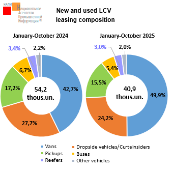 According to the marketing agency NAPI, 40.9 thousand new and used LCV* were leased to corporate clients in January-October 2025, which was a 24.5% decline on the similar period of 2024, when 54.2 thousand LCV were leased. Among vehicle types presented in the diagram, bus leasing saw the sharpest decline over the year (-39.3%)…