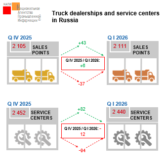 According to the NAPI, in Q I 2026 compared to Q IV 2025, the number of authorized sales points increased by 6 units, while the number of authorized service centers decreased by 12 units. The number of authorized Chinese truck sales points fell by 10 units during the quarter, reaching 1,587 units …