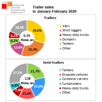 According to the NAPI, 2.18 thousand new semi-trailers were sold in January-February 2026, which was a 49.3% decline on the previous year. New trailer sales totaled 340 units, having shown a 64.6% decline year-on-year. The best-selling semi-trailer types in January-February 2026 were tankers (0.47 thousand units) …