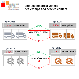 The marketing agency NAPI has updated its report on LCV* dealerships and service centers in Q I 2026. Compared to Q IV 2025 the number of authorized sales points increased by 17 units (+1.2%). The number of authorized service centers, on the contrary, decreased by 13 units (-0.6%). In Q I 2026 the number of sales points amounted to 1.4 thous. units, while that of service centers totaled 2.1 thous. units…