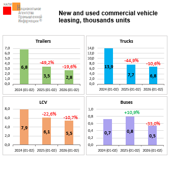 According to the marketing agency NAPI, new and used LCV sales fell by 17.6% to 58.5 thousand units in January-February 2026. New LCV sales declined the most: by 28.3% to 11.1 thousand units. Compared to the similar period of 2025, sales of LCV aged over 20 years (-23.0%), aged 16-20 years (-22.6%), 11-15 years (-19.6%), and 4-6 years (-12.0%) also decreased…