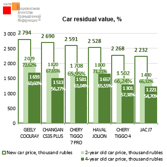 The marketing agency NAPI has updated its «Car residual value» report for Q IV 2025. Among two- and four-year-old cars shown in the graph, Geely Coolray could be sold at the highest price last quarter: its average price was 2.0 million rubles and 1.7 million rubles, respectively. Geely Coolray became the leader by residual value preservation relative to the new car price after two years of operation…