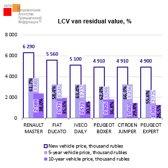 The marketing agency NAPI has updated its «Light commercial vehicle residual value» report for Q III 2025. Among five- and ten-year-old vans shown in the graph, RENAULT MASTER could be sold at the highest price last quarter: its average price was 3.9 million rub. and 2.4 million rub., respectively. CITROEN JUMPER became the leader by residual value preservation relative to the new van price after five years of operation…