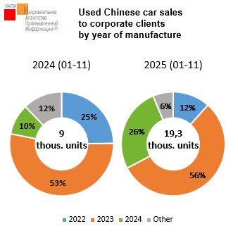 According to the marketing agency NAPI, 19.3 thousand used Chinese cars года were sold to corporate clients in January-November 2025. Over the year, sales of Chinese cars grew by 115.1%. Sales of TOP-6 brands of used Chinese corporate cars increased by 129.3%, their share was up to 69.2%…