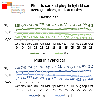 According to the NAPI, from September to October 2025, the price for new electric cars decreased by 13.7%, while that for new hybrid cars fell by 0.7%. The drop in prices for new electric cars in October can be explained by increase in offers for electric cars manufactured in Russia, which are, on average, cheaper than imported ones …