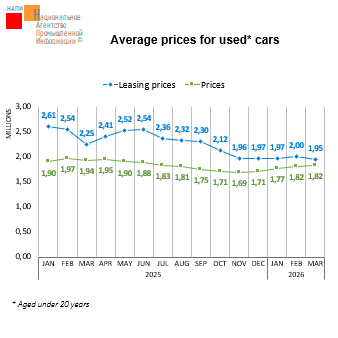 The marketing agency NAPI analyzed the dynamics of average prices for used* cars and used cars offered by leasing companies for the period from January 2025 to March 2026. Over the year, from March 2025 to March 2026, average prices for used cars decreased by 5.8%. Leasing prices fell more significantly, by 13.2%…